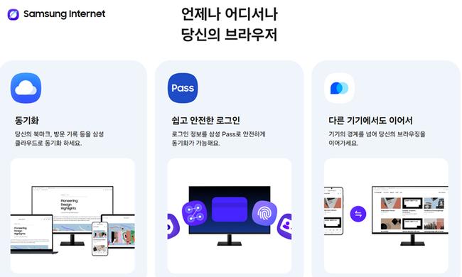 새로운 삼성 인터넷 PC 브라우저는 모바일과 PC 간 북마크, 방문 기록, 로그인 정보 등 브라우저 데이터를 실시간 연동할 수 있으며, **삼성패스(Samsung Pass)**에 저장된 개인정보를 활용해 PC에서도 간편한 로그인과 자동완성이 가능하다.