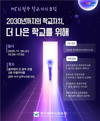 이번 `광주 학교자치 포럼`은 `2030년까지의 학교자치, 더 나은 학교를`를 주제로, 학교자치의 현재를 돌아보고 미래 방향을 함께 모색하기 위해 마련됐다.