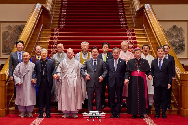 이재명 대통령은 12일 낮 청와대에서 국내 주요 종교지도자들을 초청해 오찬 간담회를 열고, 종교계의 지혜를 바탕으로 국민 통합과 사회 갈등 해소에 힘을 보태 달라고 당부했다.